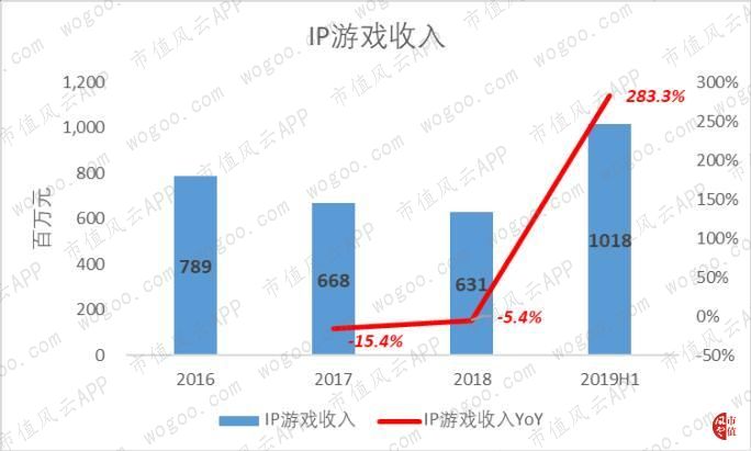 2018年,公司IP游戏收入为6.31亿元,同比下跌5.4%。而在2019年上半年,公司IP游戏收入同比大增283%,至10.18亿元,今年上半年的IP游戏收入已超过去年全年。