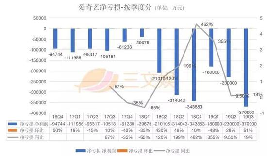居高不下的成本让爱奇艺在新一季里也没能盈利,净亏损扩大到了37亿元。