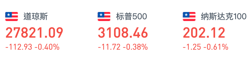 周三,市场早段聚焦美联储10月货币政策会议纪要,美股窄幅回落。截至收盘,标普500指数跌0.38%,报3108.44点;纳指跌0.51%,报8526.73点;道指跌0.40%,报27821.09点。