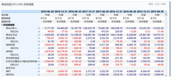 观察公司最近今年业绩,可以发现,雅高控股业绩波动非常大,且近年来业绩不断走差。截至2018年,公司营收遭腰斩,录得5.45亿元;净利爆降19倍,从2017年的845万转为亏损近4亿。2019年中期业绩虽然有所好转,但净利依然录得2880万元的亏损,营收再度遭遇腰斩。