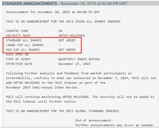 要说雅高控股暴跌的直接原因,那就是MSCI明晟公司在11月20日发出声明,暂停将雅高控股纳入MSCI中国指数,将会继续关注雅高控股。