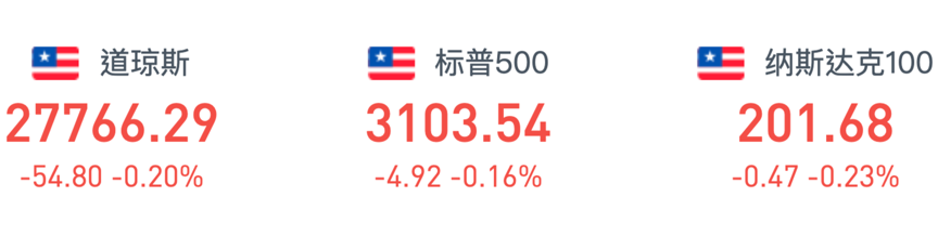 周四,市场关注美国首次申请失业救济金人数以及美国10月成屋销售等多项经济数据。截至收盘,道指下跌0.20%,报27766.29点;标普500指数跌0.16%,报8506.21点;纳指跌0.24%,报8506.21点。