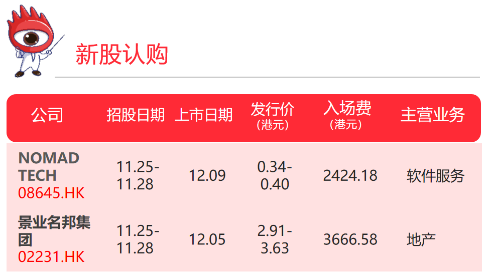 本周两只新股开启认购,字母股Nomad Tech是一间来自马来西亚根基稳固的互联网管理服务供应商,根据F&S报告,该公司在马来西亚互联网管理服务行业排名第八。上市市值约为2.04~2.40亿港元间,保荐人为脉搏资本有限公司。