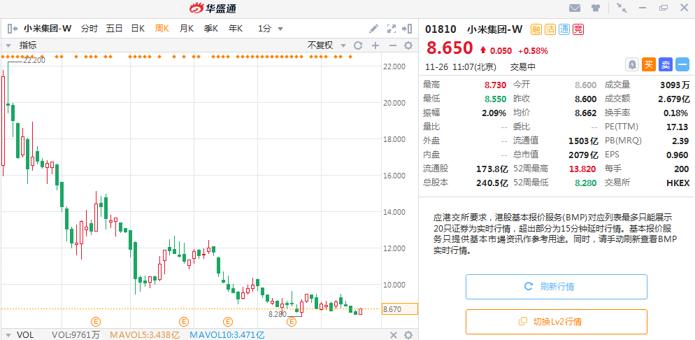 当然在股票市场,有看淡,也有看好的声音。比如像太平洋证券在11月6日给与小米16港元的目标价,如果以现在小米8块多港元水平来计算,甚至有翻倍的收益空间!