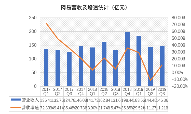以网易近年来的营收为公司效益的参考值,可以看到网易的营收规模已经连续多个季度维持在单季150亿上下的规模,营收增速尽管仍较为可观,但明显呈现出下滑迹象,不仅基本告别此前30%-50%的高速增长,甚至在2019Q2首次出现了单季11%的营收负增长。叠加游戏行业监管趋严的现状和宏观经济下滑的预期,可以说网易确实有压缩成本、精简业务团队的需求。