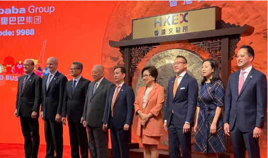 阿里巴巴作为今年港股最重要的IPO之一,重新杀回了香港市场!上市首日主席张勇、副主席蔡崇信主持敲锣仪式,另外阿里巴巴独立董事董建华、香港财政司司长陈茂波、港交所主席史美伦、港交所行政总裁李小加都参与了敲钟。自此,阿里巴巴第二次正式在香港上市。