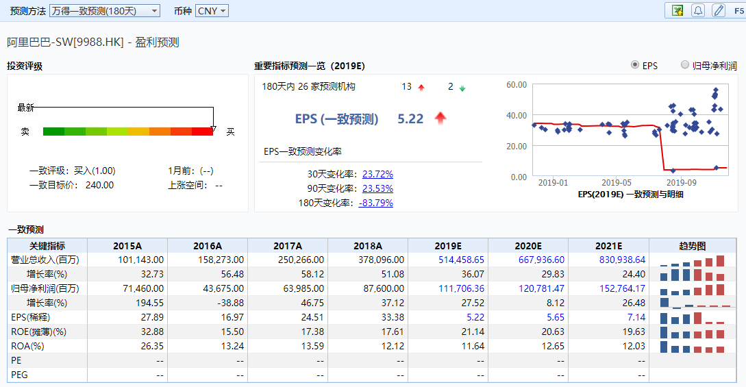 在投资机构的眼中,阿里巴巴的未来一片光明,预计到2021年之前,阿里的未来营收复合增长速度能连续保持在20%以上。阿里2021年的净利润也会相对于2019年增长36%。