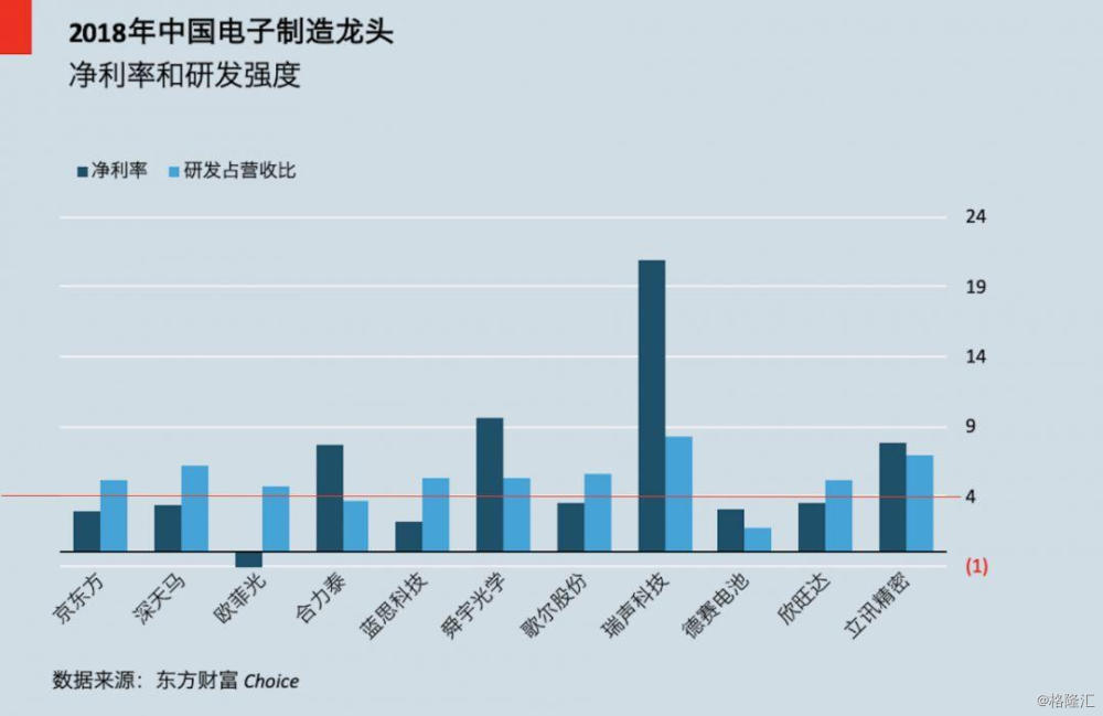 这类企业开始有不低的研发支出来不断改善工艺水平,保障利润率。利润率往往能达到7%-8%,研发也能超过5%。如立讯精密的研发支出达到了营收的7%,蓝思科技则超过了5%。