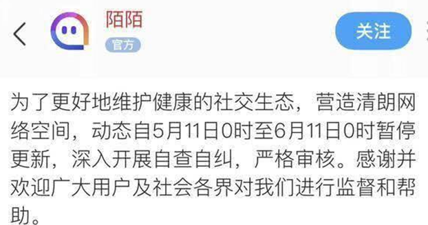 除了ZAO,陌陌与探探也在今年都遇到了强监管,2019年4月28日,探探在多个安卓应用商店下架,对于此次探探被下架整改的事件,虽然探探方并未透露具体下架原因,但业内人士普遍都认为探探是因为传播淫秽色情等违法违规信息而被下架。而且陌陌在5月开始了为期一月的全民禁言,陌陌市值一夜蒸发46亿 。