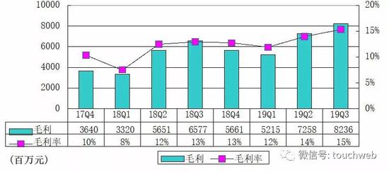 小米第三季度毛利由2018年第三季度的66亿元增加25.2%至2019年第三季度的82亿元。