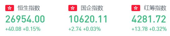 昨日收盘,恒生指数涨0.15%,报26954点。国企指数涨0.03%;红筹指数涨0.32%。从板块表现看,阿里概念涨幅居前,纸业股、猪肉概念、半导体、农业股、航空股普遍走强,教育股跌幅较大,物管股、工业大麻概念、游戏软件、药品股纷纷走低。