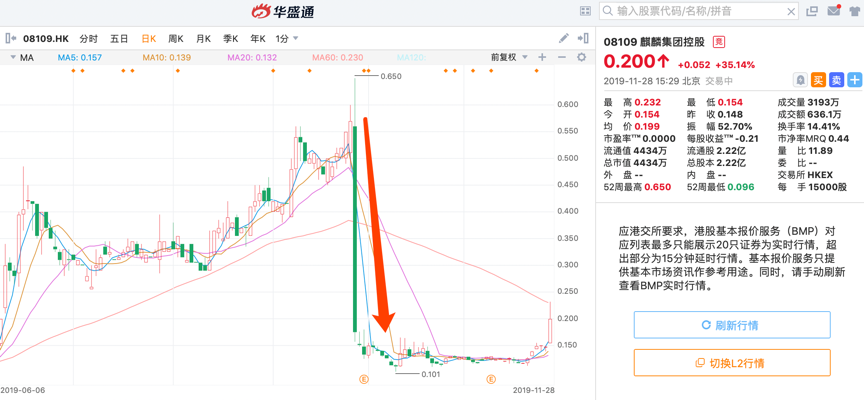 此前,麒麟集团控股曾于2019年9月26日暴跌近70%。中泰国际策略分析师颜招骏在复盘后认为,该股的暴跌与庄家大规模出货有关。