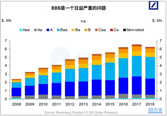 数据显示,随着企业债务达到创纪录水平,BBB债务在过去10年增加了两倍,杠杆贷款以及BB和B级债务也大幅增长。这使得金融市场变得越来越脆弱。