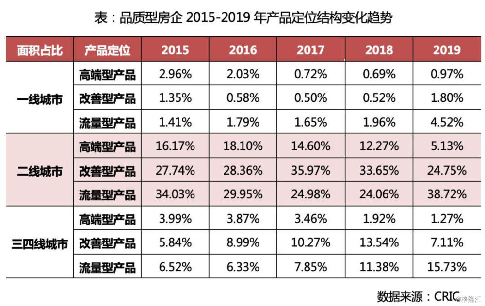 在高端型、改善型产品市场走低的现状下,品质型房企面临了相当的去化压力,加码流量型产品有助于推动去化,保证业绩增长。