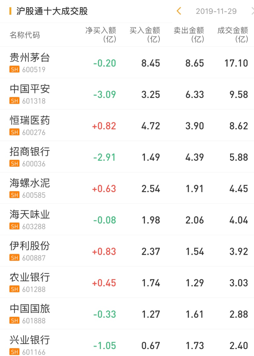 北上资金方面全天净流入20.26亿元。沪股通净卖出贵州茅台0.2亿元,净卖出中国平安3.09亿元,净卖出招商银行2.91亿元;净买入恒瑞医药0.82亿元。