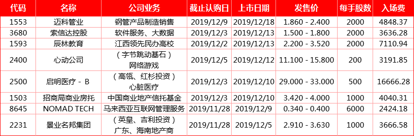 更多的新股信息请关注:华盛新股研究;2019年最后一个月将至,祝各位投资者能取得一个满意的投资回报。