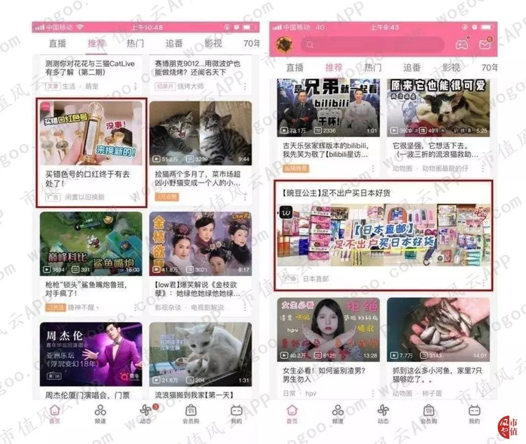 但从广告业务营收的数值上看,从2016年的0.61亿元,2017年的1.59亿元,到2018年的4.64亿元,绝对值呈稳定高速增长的趋势。所以风云君认为B站的广告策略并不是疲软,而是厚积薄发的。