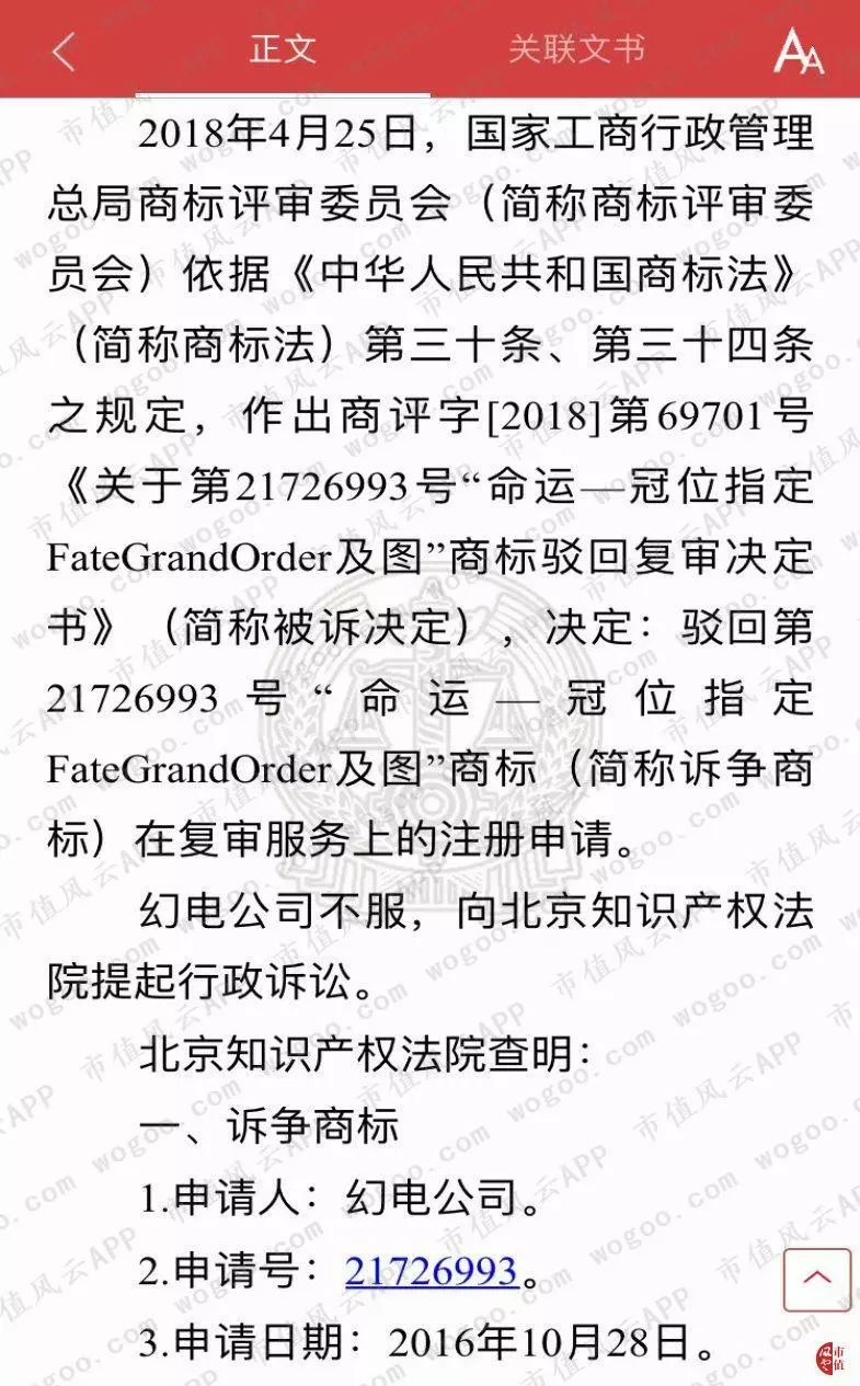 而结果甚是滑稽:FGO正式名称《Fate/Grand Order》被驳回,而翻译名《命运冠位指定》通过审批。这也就是说,《命运冠位指定》成为B站独有商标!