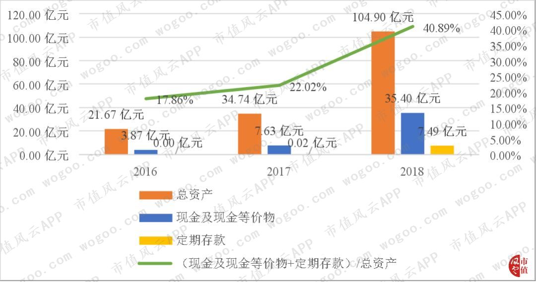 在2016年B站的(现金及现金等价物+定期存款)/总资产还只有17.86%,2017年增长到22.02%,到了2018年上市后,其(现金及现金等价物+定期存款)/总资产就直接增加到了40.89%。