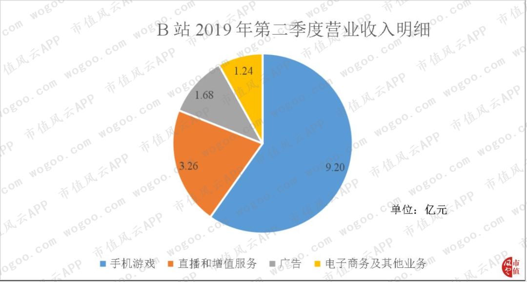 B站的收入主要由:手机游戏、直播和增值服务、广告、电子商务及其他业务四个方面构成。
