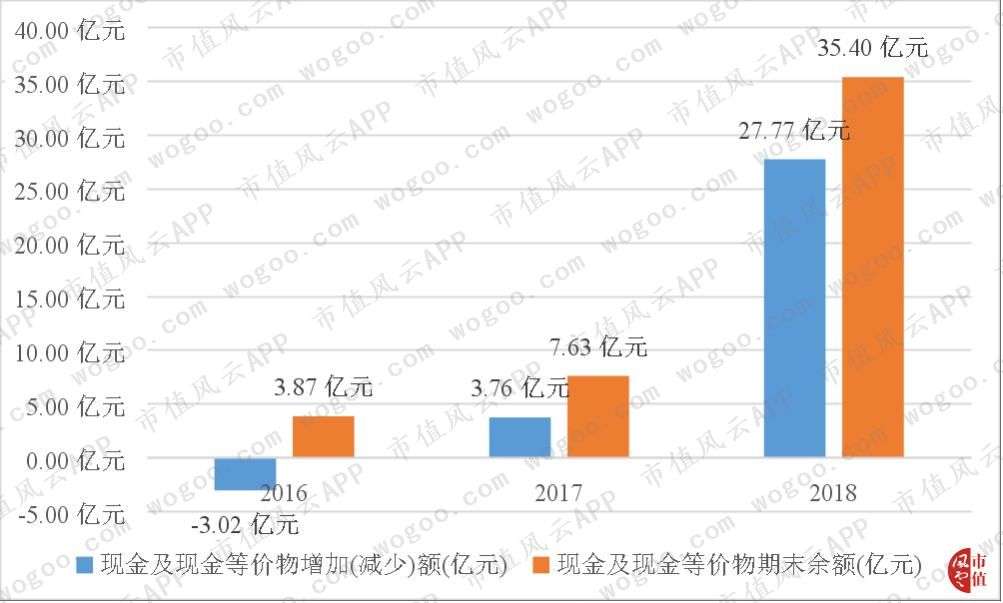 现金及现金等价物的增加额和期末余额都在持续增长。从2016年的-3.02亿元增加额、3.87亿元期末余额,2017年的3.76亿元增加额、7.63亿元期末余额,到2018年的27.77亿元增加额、35.40亿元期末余额。