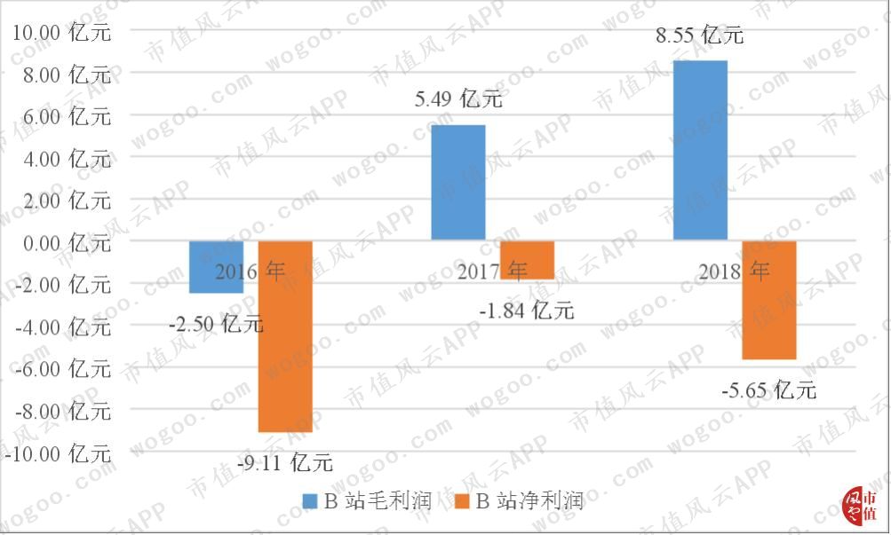 但B站的利润部分也有与其他流媒体公司不同的地方:自2017年开始,B站的毛利润就开始转正,从2016年的-2.50亿元,2017年的5.49亿元,到2018年的8.55亿元。B站的毛利润在节节攀升。