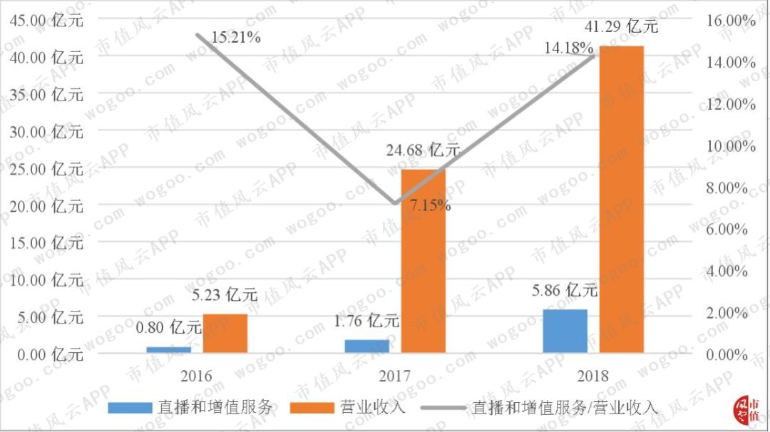 综上,B站在直播和增值服务业务上形势一片大好。其财报数据也是贴合实际情况,该业务收入持续增高:2017年直播和增值服务业务营业收入1.76亿元增长231.97%至2018年的5.86亿元。