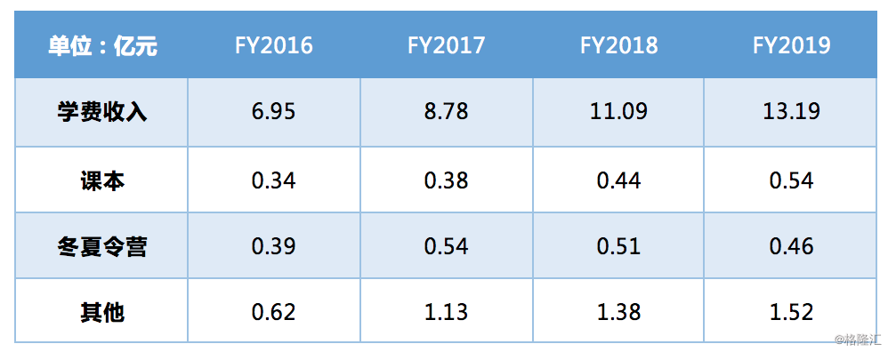 其中,学费(含住宿费)收入贡献了84%的营收。FY2019学费收入为13.19亿元,同比增长了18.9%。其他收入中,主要是海外升学咨询业务、向学生销售教育用品的收入。