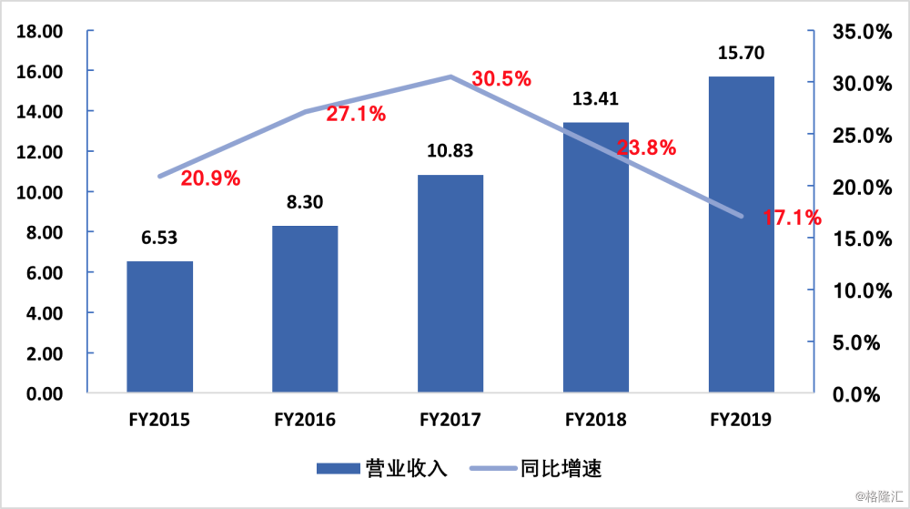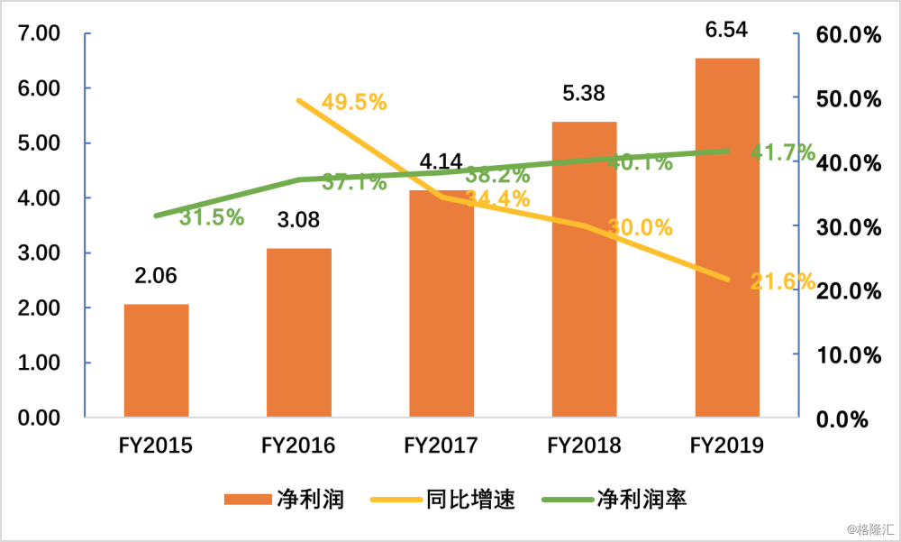 图:FY2015~FY2019净利润及同比增速与净利润率