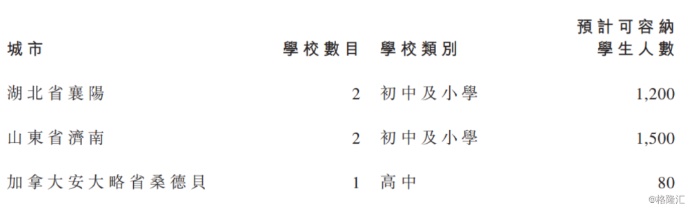 具体来看,2018/2019学年枫叶教育旗下含28所幼儿园、25所小学、24所初中、15所高中与3所外籍学校,共95所学校,分别位于中国、加拿大及南澳的24座城市。相比于2017/2018学年,新增14所学校,包括一所位于武汉的幼儿园、7所位于襄阳的幼儿园、位于四川泸州的一所初中和小学、位于江苏盐城的一所初中和高中、位于陕西省西安市的一所幼儿园和位于南澳阿德莱德的一所高中。