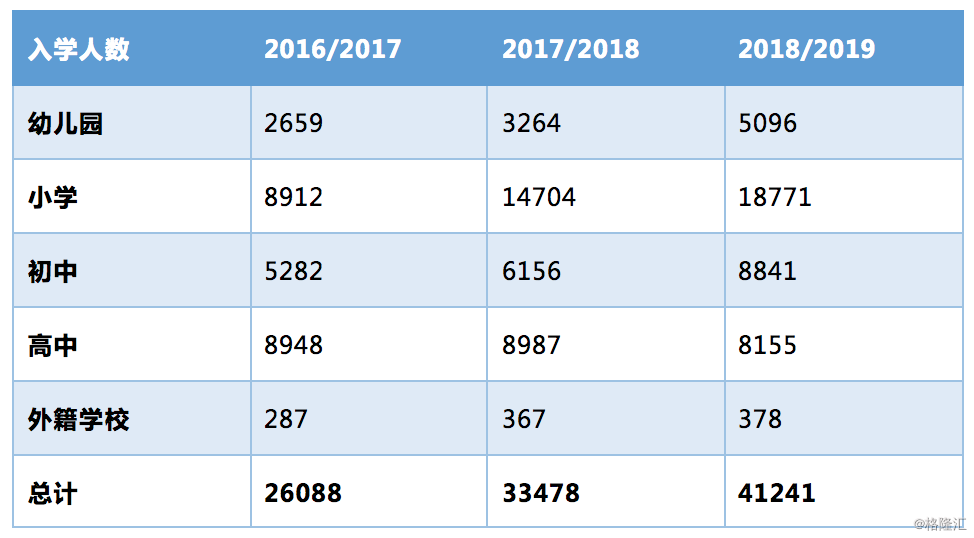 2018/2019学年,枫叶教育集团的入学总人数达到了41241人,同比上年增长了23.2%,合7763人。枫叶教育发布了2015/2016至2019/2020学年之五五规划,经调整目标为2019/2020学年终前入学人数超过45,000名,可见,枫叶教育离达成目标已经不远。