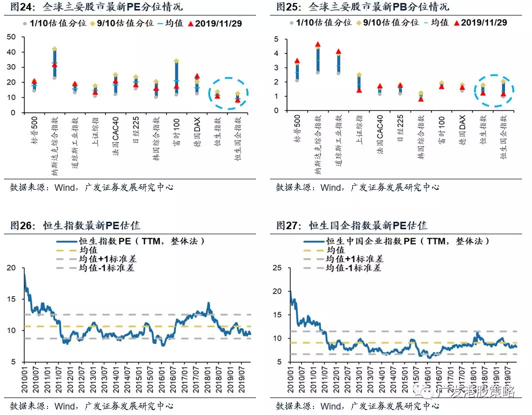 其次,对于港股中部分“低预期、高Beta、低估值”早周期可选消费,基本面和政策预期边际改善对应极低估值,凸显较高性价比。我们预计,2020年将迎来“好光景”,推荐港股博彩和汽车股,关注内房股。