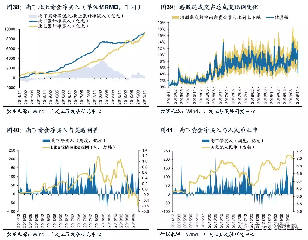 本周我们在2020年港股策略展望《价值回归年》中(参考报告《港股:价值回归年——2020年港股策略展望》,2019-11-26),基于2020年全球和中国内地“资产荒”、同时“弱美元、稳人民币”背景下,海外和南下资金驱动港股估值反弹,以及2020年中资股盈利将由“稳”走向弱复苏等逻辑,看好港股明年表现。