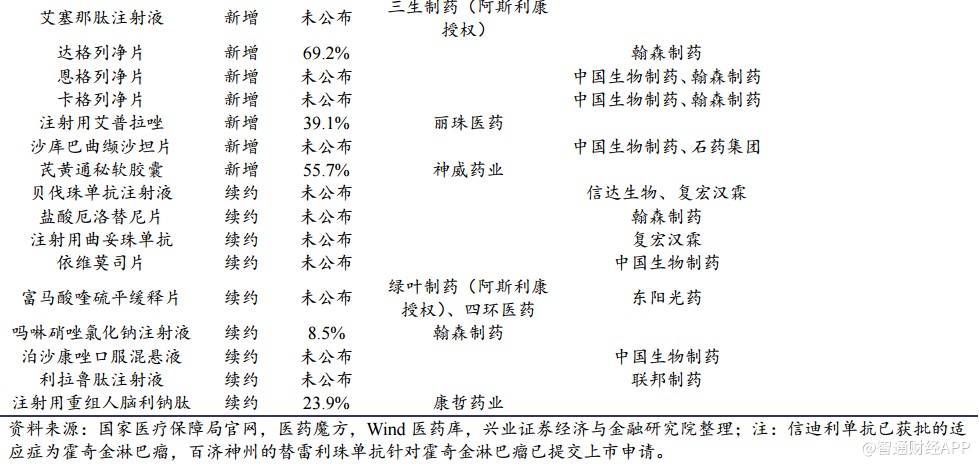 (3)信达生物:信迪利单抗是公司的核心品种,本次降价64%成功进入医保目录,该产品2018年底获批,目前正处于销售的成长初期,纳入医保目录后销量有望加速上升,带动业绩增长。