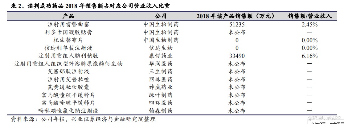(1)中国生物制药:中国生物制药在本次医保谈判中有包括雷替曲塞在内的多个品种谈判成功,这些品种在公司的收入中占比还较低,纳入医保目录后销量有望迅速提升。同时,公司还有众多即将上市的药品也在本次谈判目录中,这些产品上市以后有望享受同等的医保支付待遇,带来业绩增量。
