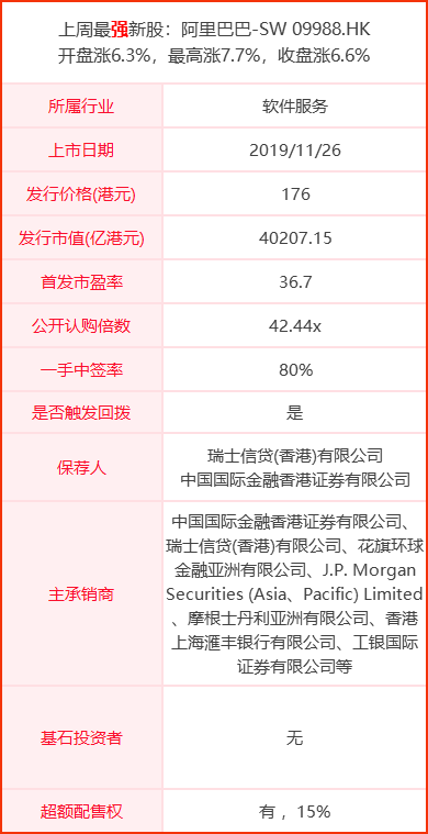 上周最最最吸引眼球的莫过于阿里上市了,超20万人认购,中签率高达80%,发行定价176港元对比美股有约5%的差价,打中就是赚到!