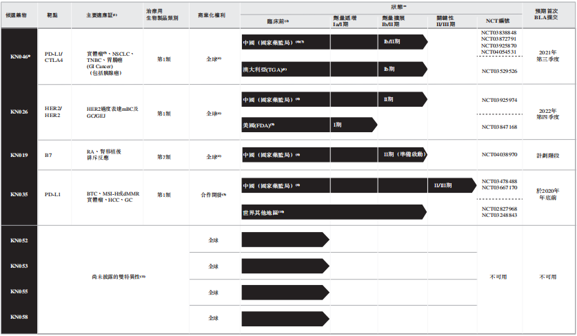 KN019 -一种基于CTLA-4的免疫抑制剂融合蛋白,在自身免疫性疾病及肿瘤治疗引起的免疫失调中具有潜在的广泛应用。