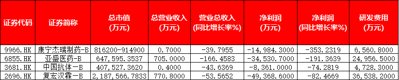 目前康宁杰瑞并没有任何商业化的药品,收入主要包括利息收入、政府补助及其他杂项收入(包括向独立第三方一次性销售蛋白质成分所产生的收入)。