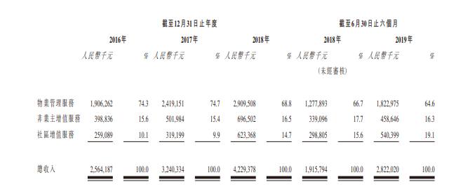 从2018至2019年的上半年业务营收变动上来看,这两项业务都实现了35%、80%的高速增长,其中社区增值服务占比提升明显。