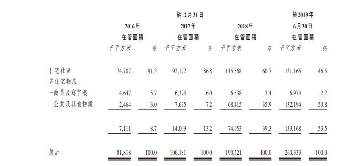 截止2019年6月底,保利物业服务遍布全国148个城市,合同管理面积达454.9百万平方米,在管总面积达260.3百万平方米,管理846项物业(565项住宅物业+281个非住宅物业)。