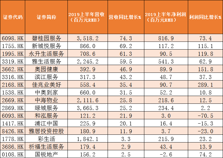 物业股为什么会在港股市场表现独树一帜,我们可以从他们最新的2019年上半年业绩来选找答案。从营收增速来看,整个物业管理板块上市公司基本保持增长,而像碧桂园服务的营收达到35.18亿元,较去年同期增长74.3%。