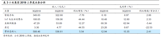 2.2 小米集团-W(01810)3Q19收入增6%,调整后净利增20%,IOT业务持续高增长