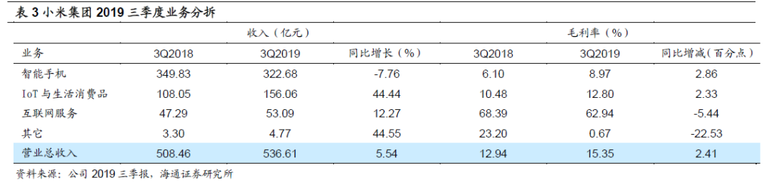 2.2 小米集团-W(01810)3Q19收入增6%,调整后净利增20%,IOT业务持续高增长