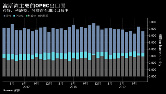 油轮跟踪数据显示,在11月份,合计占OPEC产量近70%的沙特阿拉伯、伊拉克、科威特和阿拉伯联合酋长国日均出口1479万桶原油和凝析油。相比10月份每天减少97万桶,并且是7月以来的最低水平。