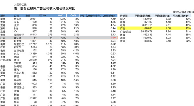 这里我也插入一下各家互联网公司的增长以及估值情况,以及趣头条的一个相对较低的P/S估值倍数。昨晚跌一跌就更低了。