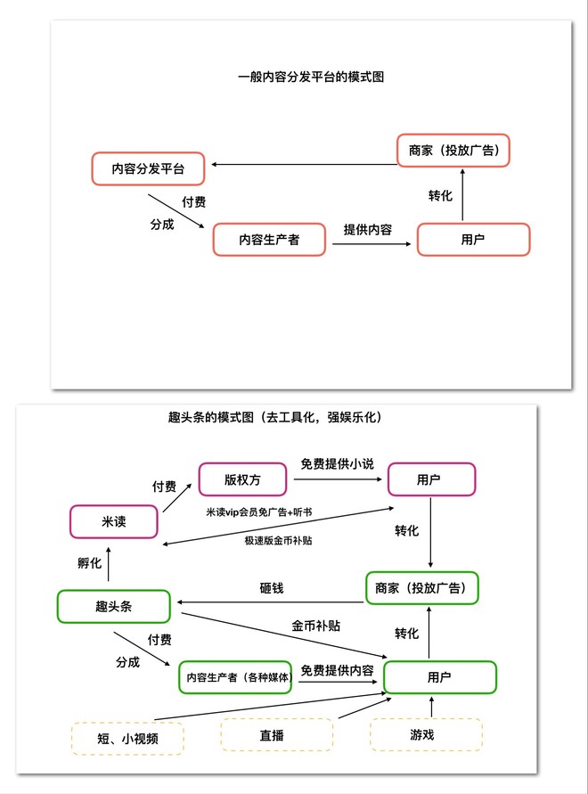 这个模式本身很有利于培养用户的深度使用,做好了的话,就类似于王兴之前提过美团的一个“一横多纵”战略,横的是一个下沉流量平台,纵的是一个个垂直场景,用户来了可以反复变现。而我认为趣头条已经有了流量入口的意义,我认为无论谁想染指一把下沉市场,除非你是拼多多或是快手,趣头条都会是一个靠谱的流量入口(所以阿里和腾讯都投了)。