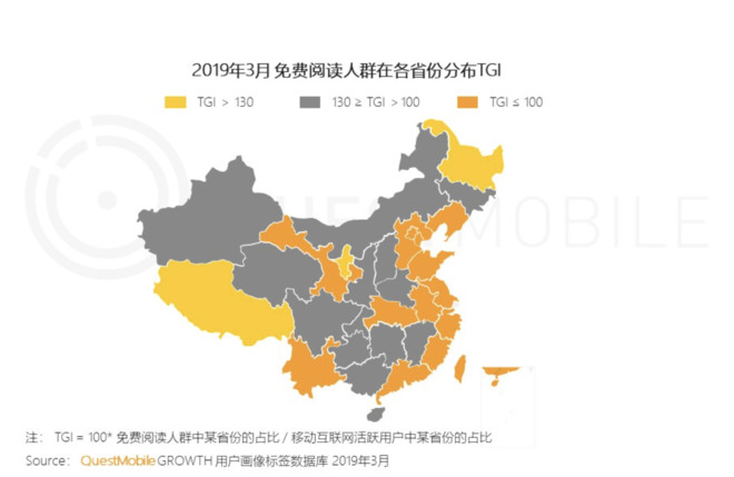 所以看得出——当然也是常识——总体上越下沉的地区,免费阅读量需求越大。来源:QuestMobile)