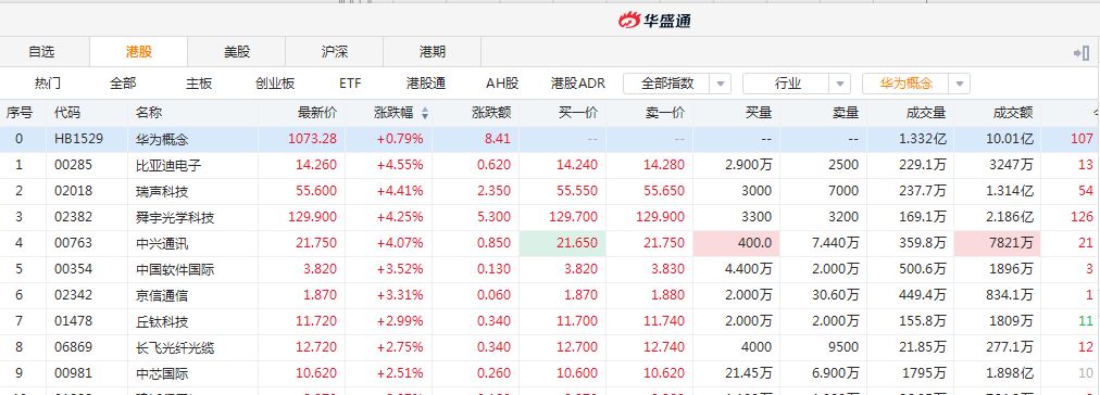 新浪港股讯 12月5日消息,华为概念股集体反弹,其中,舜宇光学大涨4.25%,瑞声科技涨4.41%,比亚迪电子涨4.55%,丘钛科技涨2.99%。