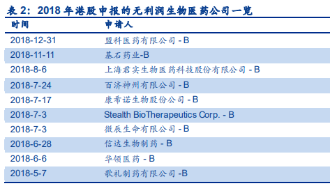 在2018 年共 7 家无利润生物医药公司于港股上市。
