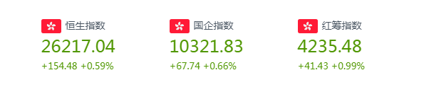 12月5日早盘,恒指高开低走,临近午盘涨幅收窄至0.3%,午后涨势有所扩大,截至收盘,港股恒指涨0.59%,报26217.04点;国企指数涨0.66%;红筹指数涨0.99%。